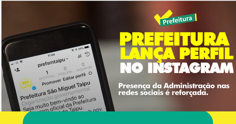 A Prefeitura lança o seu perfil no Instagram: https://www.instagram.com/prefsmtaipu. No espaço, informações da cidade e belas imagens das riquezas naturais e turísticas poderão ser acompanhadas pela população.